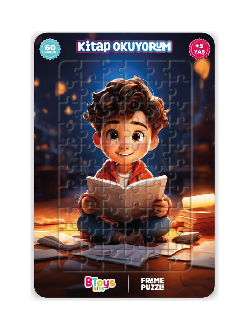 BToys Kitap Okuyorum - Frame Puzzle - 60 Parça Kitap Okuyorum 60 Parça Frame Puzzle BToys tarafından sunulan "Kitap Okuyorum" 60 Parça Frame Puzzle, çocuklarınızın hayal gücünü geliştirecek ve onlara eğlenceli vakit geçirmelerini sağlayacak harika bir eğitici aktivitedir. Bu renkli ve sevimli puzzle, çocukların el-göz koordinasyonunu geliştirmelerine, problem çözme yeteneklerini artırmalarına ve sabır kazanmalarına yardımcı olur. Öne Çıkan Özellikler: 60 Parça Eğitici Aktivite: Bu puzzle, 60 parçadan oluşur ve 5 yaş ve üzeri çocuklar için uygundur. Çocuklarınız bu parçaları bir araya getirirken eğitici ve eğlenceli bir şekilde vakit geçirirler. Renkli ve Canlı Tasarım: Kitap okuyan bir çocuğun sevimli görüntüsü, çocukların ilgisini çeker ve puzzle tamamlandığında ortaya çıkan resim odalarına neşe katar. Geliştirici ve Eğlenceli: Bu puzzle, çocukların motor becerilerini ve problem çözme yeteneklerini geliştirirken, aynı zamanda odaklanma ve sabır gibi önemli becerileri de ka