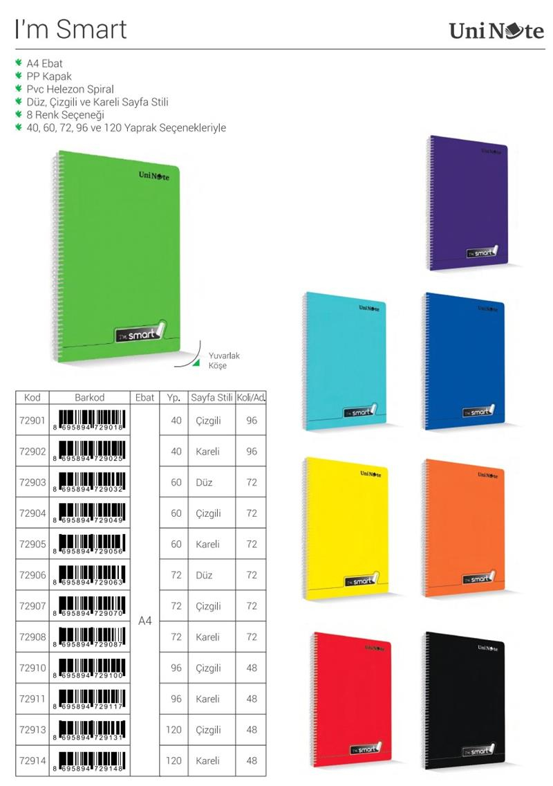 * A4 Ebat * Plastik Kapak * PVC Helezon Spiral * 8 Renk Seçeneği * 80 Yaprak - Kareli