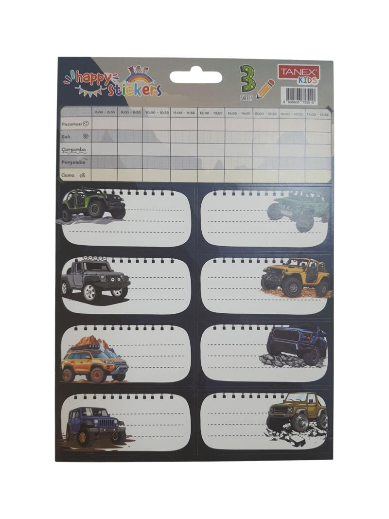 Etiket- Okul Etiketi Ders Programlı Erkek 3 Ad/ps