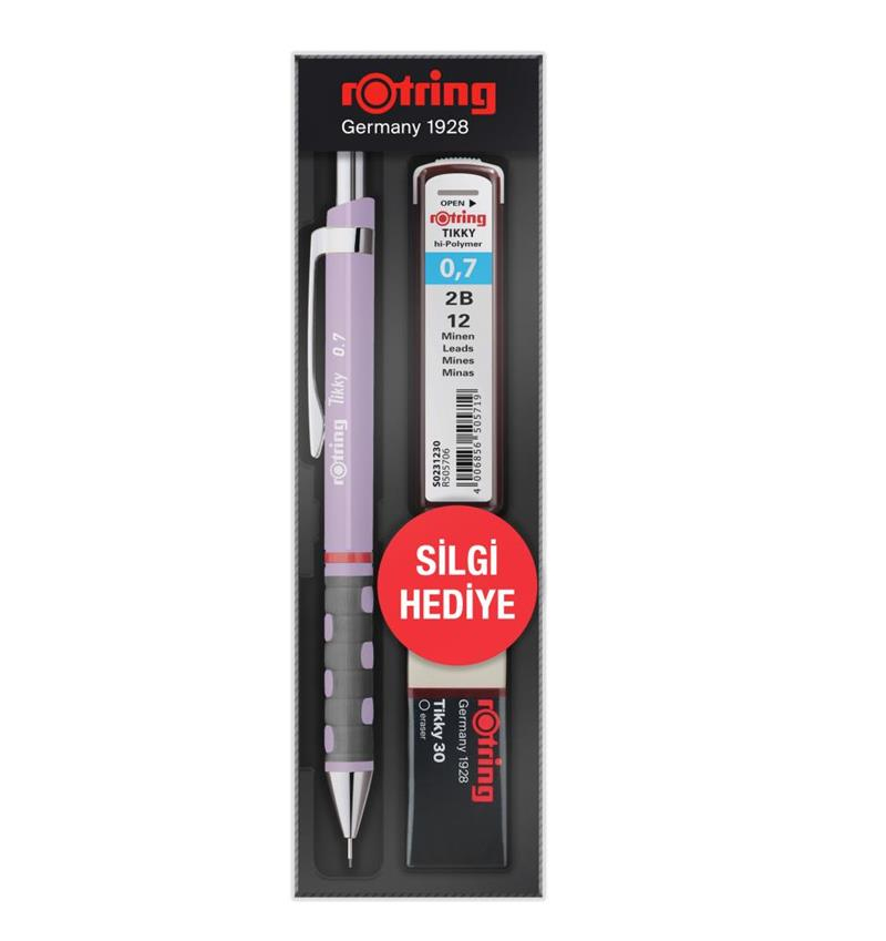 Rotring Tikky Versatil Lila Kalem 0.7+Min+Silgi Hediye