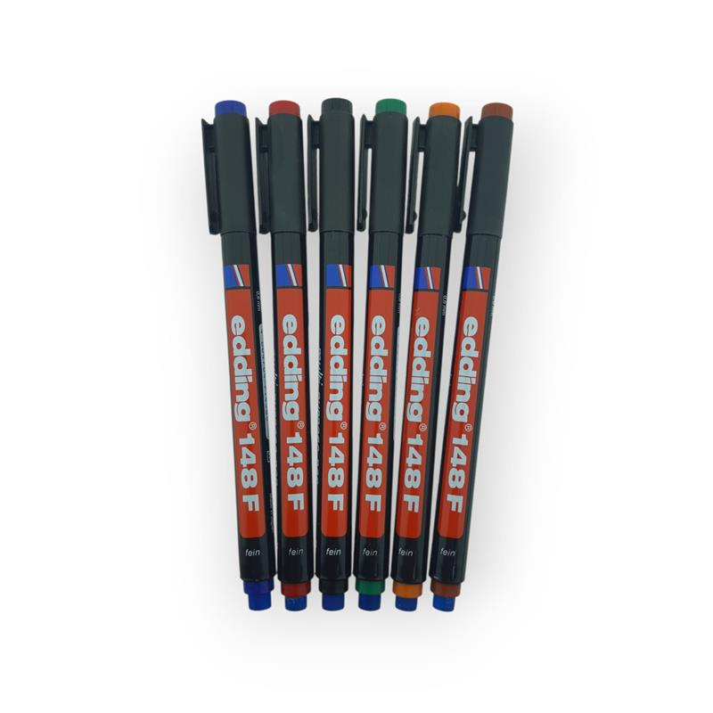 Asetat Kalem- Silgili 6lı Poşet 6 farklı renkte Edding e148f Asetat Kalem 6 Adet