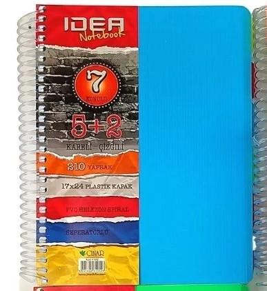 İdea Plastik Kapak 17x24 cm 210 Yaprak 5+2 Bölmeli Spiralli Defter