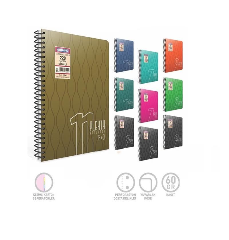 Plenty Spiralli Seperatörlü Plastik Kapak A4 140 Yaprak 4+3 Defter (1065) Gıpta
