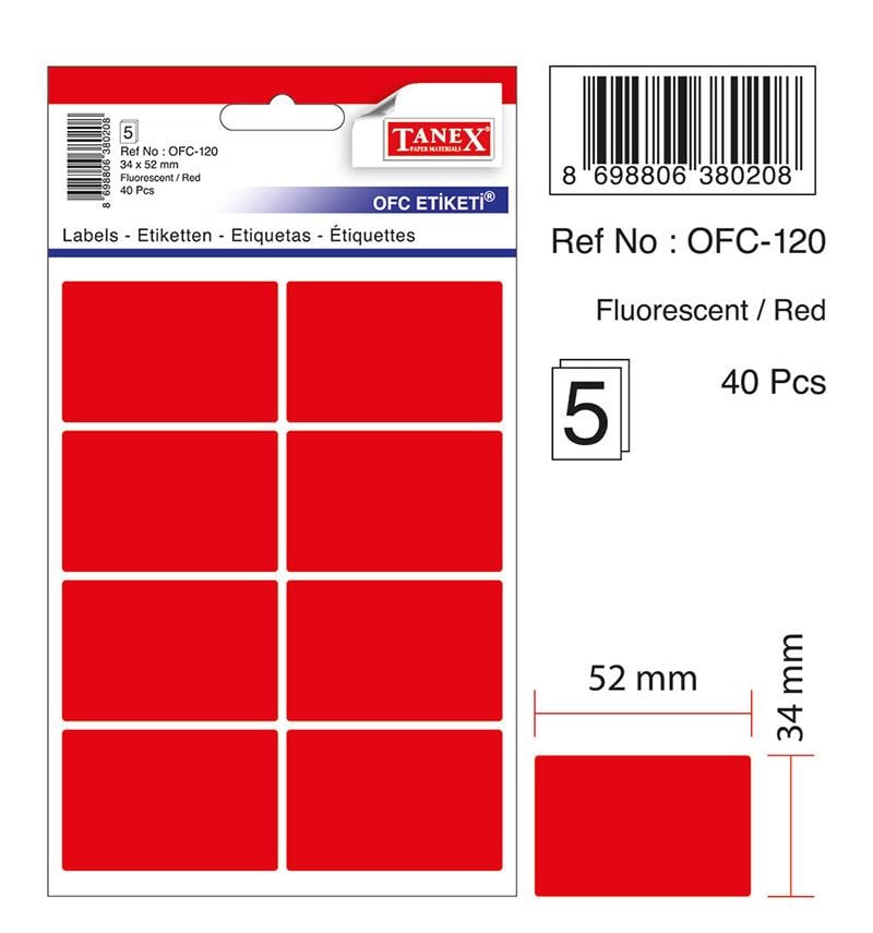 Etıket- Ofıs Ofc-120 Flo Kırmızı 5 Ad