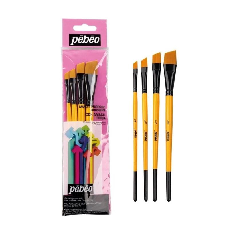 Pebeo Çok Amaçlı Fırça Seti - Set 9 Toplam 4 Adet Fırça 4 Adet Yan Kesik Fırça No:1/4 - 3/8 - 1/2 - 5/8
