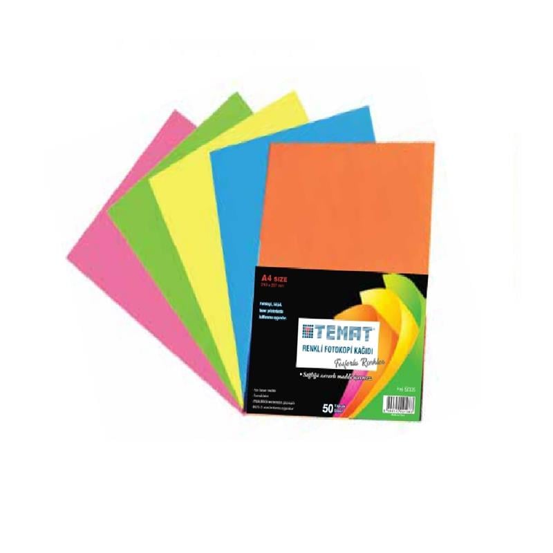 Fotokopi Kağıdı- A4 Renkli Temat 100'lü Pastel Fosforlu