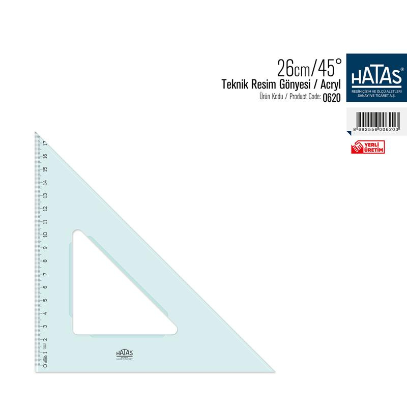 Hatas 26 cm / 45° Teknik Resim Gönyesi / Acryl