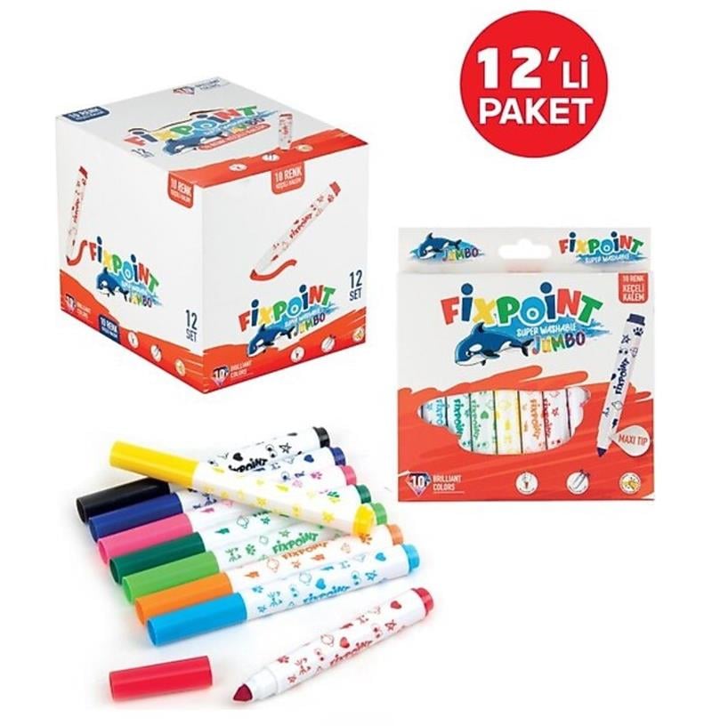 Fixpoint Jumbo Keçeli Kalem 10’lu Set 12'li Stand