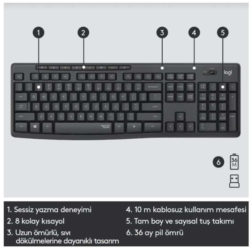 Logitech Klavye MK295 Kablosuz Mouse Set