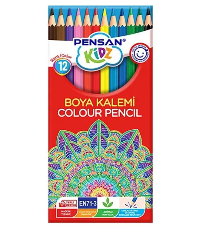 Pensan Kidz Kuru Boya Kalemi 12 Renk Set – Tam Boy