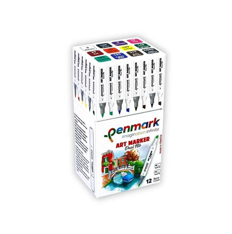 Penmark Çift Uçlu Art Marker Seti 12li 12 farklı renk mevcuttur. Bir ucu kesik, diğer ucu fırça uçludur. Zehirsiz boyaya sahiptir. Çift uçlu özelliğiyle geniş bir kullanım alanına sahiptir, Illüstrasyondan kaligrafiye kadar idealdir. Kapakları kapatılmış ve ısıya maruz bırakılmamış şekilde saklanması tavsiye edilir. Çift Uçlu Markerin Kullanım Avantajı Nedir? İnce Uç: Detaylı çizimler, konturlar ve hassas dokunuşlar için idealdir. Çizimlerde ince hatlar oluşturabilirsiniz. Kesik Uç: Büyük alanları hızla renklendirmek, gölgelendirme yapmak ve degrade (geçişli) efektler için uygundur. Bu iki uç sayesinde tek bir kalemde çok yönlü kullanım elde edersiniz.