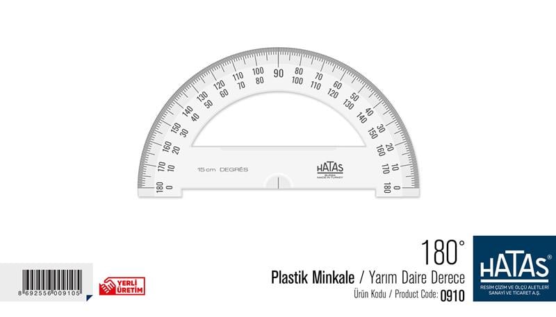 Hatas 180° Sınıf Plastik Minkale / Yarım Daire Derece