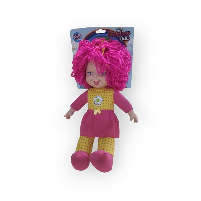 SUNMAN RAİNBOW DOLLS PEMBE SAÇLI BEZ BEBEK 50 CM