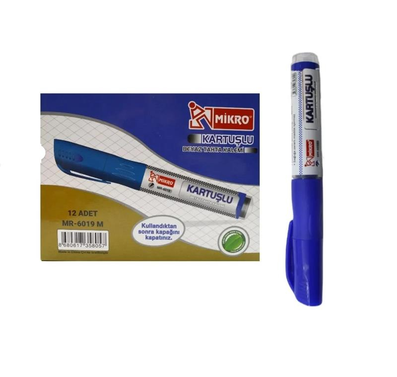 Mikro Tahta Kalemi MR-6019 Kartuşlu Mavi 12'li Paket