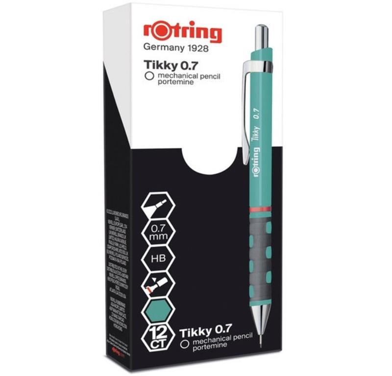 rOtring Tikky basmalı kurşun kalem ile her zaman güvenli bir şekilde çizim yapabilirsiniz. Pirinç mekanizması hassas bir uç beslemesi sağlar ve uç kırılmasını önler, böylece her çizgi temiz bir şekilde kağıt üzerinde durur. Kauçuk Soft-Touch sap ve şaftın tüy kadar hafif üçgen şekli olağanüstü yazma konforu sunar. Kurşun kalemler yeni, canlı renklerde ve neon tonlarında mevcuttur – modaya uygun, modern bir görünüm için.