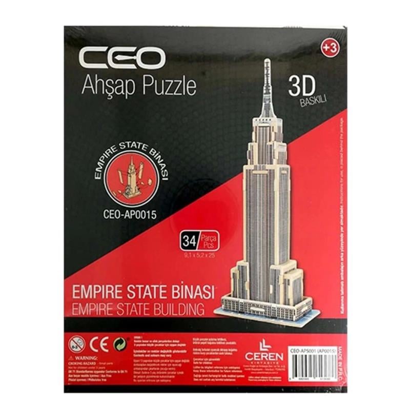 Yapboz- Ceo 3d Ahşap Puzzle Baskılı Empıre State CEO 3 BOYUTLU BASKILI AHŞAP PUZZLE EMPIRE STATE BİNASI CEO-AP0015 34 Parça ( 9,1 x 5,2 x 25)