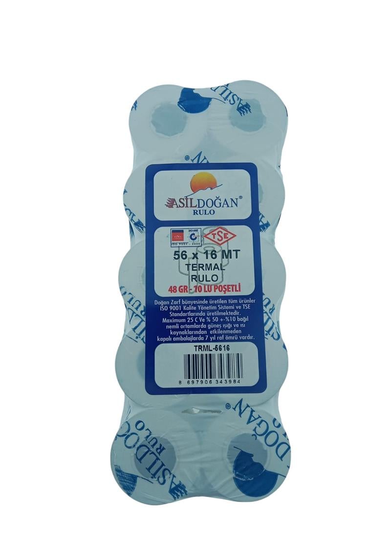 Asildoğan Yazarkasa Rulosu 56x16 Termal Pos TSE Belgeli 10 Rulo
