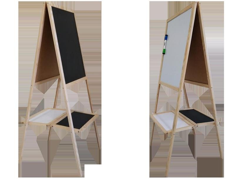 Mini mini birler, sevimli ikiler, çalışkan üçler için Çift Taraflı Yazı TahtasıÖğrenirken eğlensinler, eğlenirken öğrensinler!Çam ağacından %100 doğal ahşap çerçeveli.Tahta kalemi ile yazmak için manyetik beyaz ve tebeşirli yazım için kara tahta, ikisi bir arada.Manyetik yüzeye mıknatıs özellikli notlar, tahta kalemi ve silgiler tutturulabilir.Tahta kalemi, tebeşir ve silgileri koymak için çift taraflı geniş raflıdır.Katlanabilir özelliktedir ve kullanılmadığında yer kaplamaz.